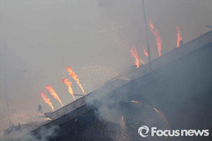 (서울=포커스뉴스) 27일 오전 서울 영등포구 여의도 한강공원 원효대교 일대에서 '수도 서울 민․관․군 합동 대규모 복합재난 가상훈련'이 진행되고 있다.