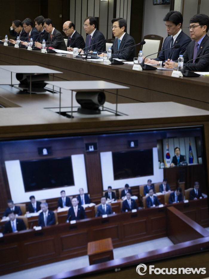 (세종=포커스뉴스) 황교안 국무총리가 26일 오후 세종시 정부세종청사에서 서울-세종 영상회의로 열린 법질서·안전관계장관회의에 참석해 모두발언을 하고 있다.