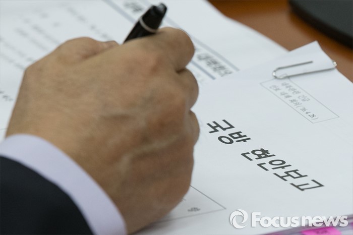 (서울=포커스뉴스) 28일 오전 서울 여의도 국회에서 열린 대북 관련 긴급 안보 대책회의에 국방 현안보고 자료가 놓여 있다.