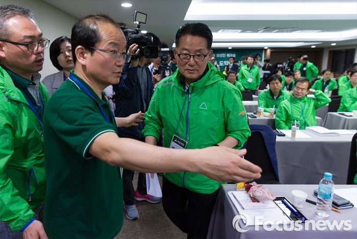 (양평=포커스뉴스) 국민의당 20대 총선 당선인 워크숍에서 합의 추대된 박지원 신임 원내대표가 27일 오전 경기도 양평 한화리조트에서 인사말을 하기 위해 이동하고 있다.