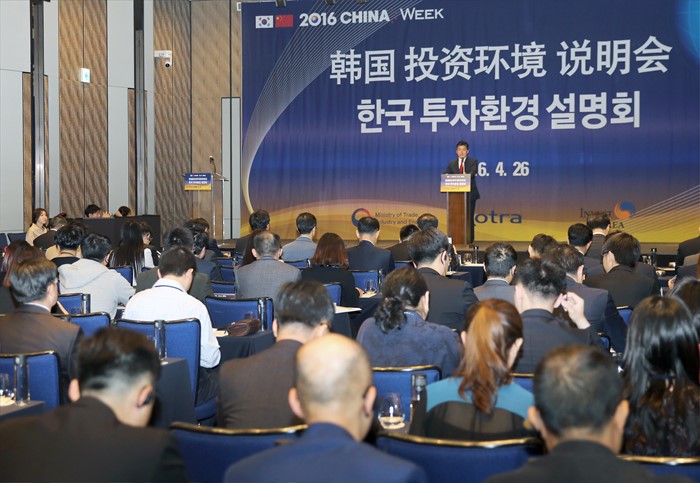 (서울=포커스뉴스) 정승일 산업통상자원부 무역투자실장이 26일 오전 서울 광화문 포시즌호텔 그랜드볼룸에서 제2차 차이나 위크(China Week) 행사 일환으로 열린 한국투자설명회에 참석해 축사를 하고 있다. <사진제공=산업통상자원부>