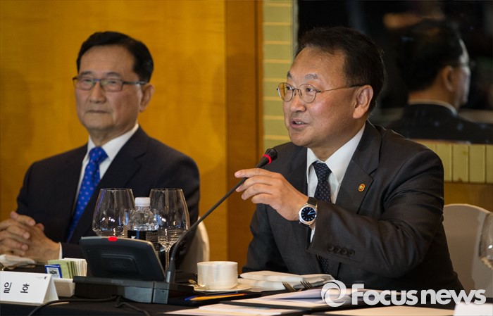 (서울=포커스뉴스) 유일호 경제부총리 겸 기획재정부 장관이 28일 오후 서울 서초구 JW메리어트호텔에서 열린 역대 부총리 및 장관과의 만찬 간담회에서 모두발언 하고 있다.