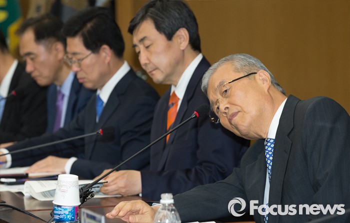 (대전=포커스뉴스) 김종인 더불어민주당 비대위 대표와 이종걸 원내대표를 비롯한 더민주 의원 및 당직자들이 28일 오후 대전시청을 방문한 가운데 대회의실에서 열린 더불어민주당-대전시 정책간담회에서 김종인 대표가 발언중 마이크를 살피고 있다.