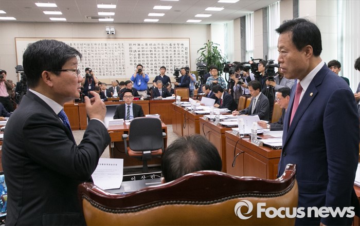 (서울=포커스뉴스) 이상민(가운데 뒷모습) 법사위원장과 이한성(오른쪽) 여당 간사, 전해철 야당 간사가 28일 오후 서울 여의도 국회 법제사법위원회 전체회의장에서 논의하고 있다.