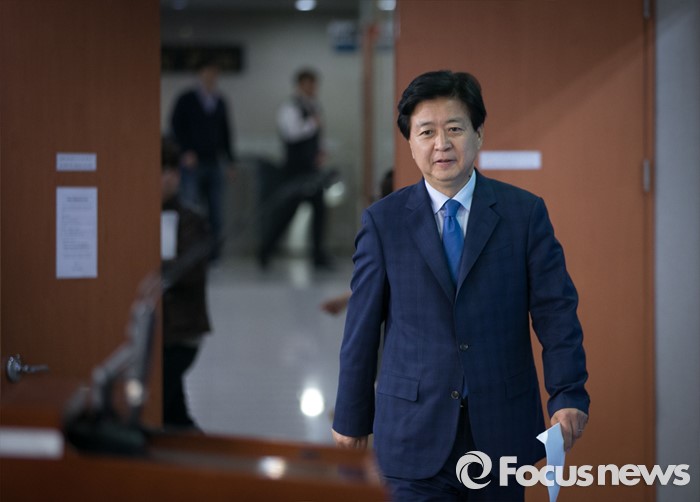 (서울=포커스뉴스) 노웅래 더불어민주당 의원이 29일 오후 서울 여의도 국회 정론관에서 원내대표 출마 기자회견을 위해 입장하고 있다.