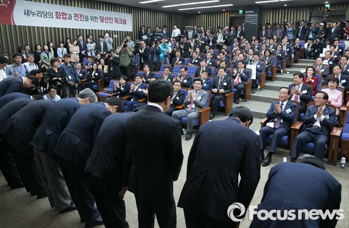 (서울=포커스뉴스)새누리당의 제20대 총선 당선인들이 '반성 결의문'을 채택하고 한 목소리로 "계파와 정파에 매몰된 작은 정치를 극복하고 민심을 존중하는 민심정치를 하겠다"고 다짐했다.