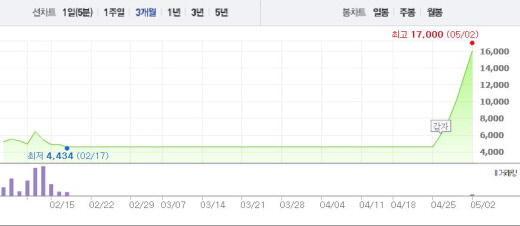 2일 오전 9시25분 현재 코아로직은 전일 대비 23.28%(3050원) 상승한 1만6150원에 거래되고 있다. 25일 매매거래 정지시 2705원이였던 주가와 비교했을 때 5.9배 상승했다. 코아로직은 26일~29일에도 29%대의 상승폭을 연속으로 기록한 바 있다.