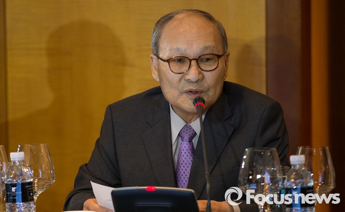 (서울=포커스뉴스) 이승윤 전 경제부총리가 28일 오후 서울 서초구 JW메리어트호텔에서 열린 역대 부총리 및 장관과의 만찬 간담회에서 모두발언 하고 있다.