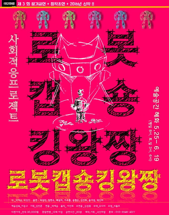 연극 '로봇캡숑킹왕짱'은 오는 5월25일부터 6월19일까지 서울 대학로 '예술공간 혜화'에서 만나볼 수 있다.연극 '로봇캡숑킹왕짱' 포스터.<사진제공=극단 하랑>