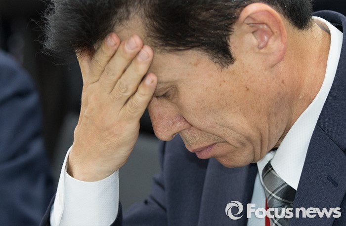 (세종=포커스뉴스) 정세화 한진해운신항만 사장이 25일 오후 세종시 정부세종청사 해양수산부 중회의실에서 열린 해운시장 및 해운동맹 재편 관련 대책회의에 참석해 잠시 얼굴을 만지며 생각에 잠긴 모습을 보이고 있다.