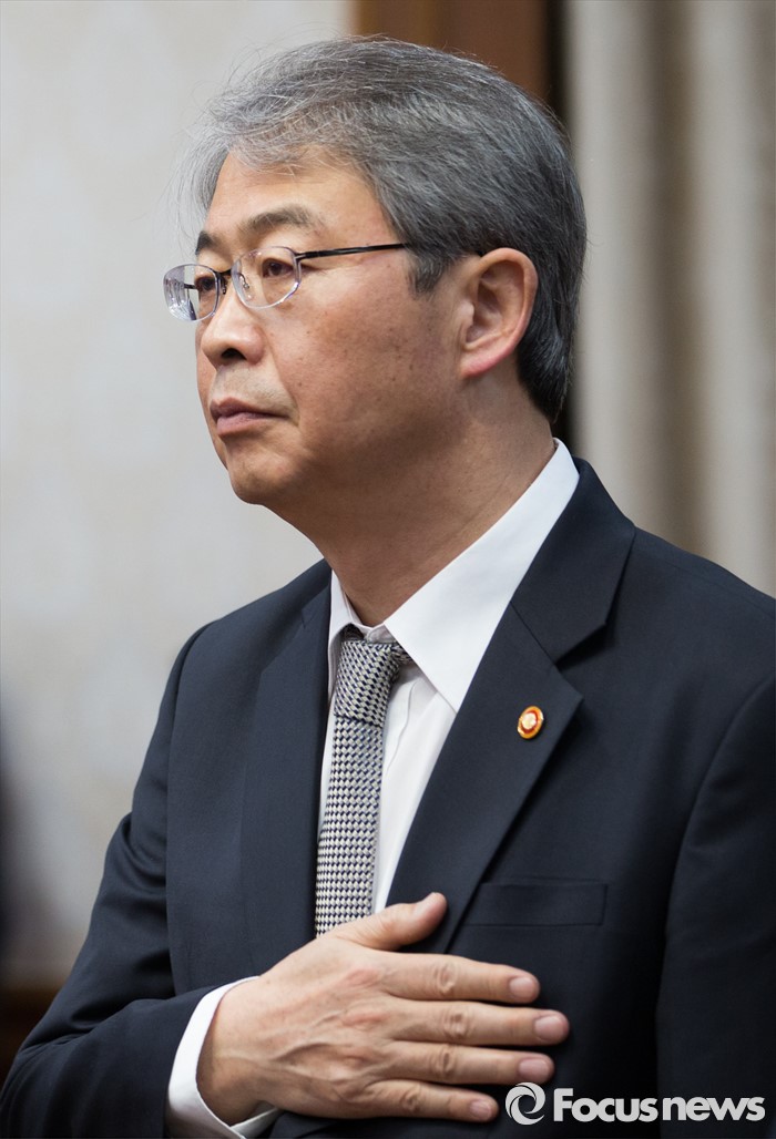 (서울=포커스뉴스) 임종룡 금융위원장이 3일 오전 서울 종로구 정부서울청사에서 열린 국무회의에 자리해 국민의례를 하고 있다.