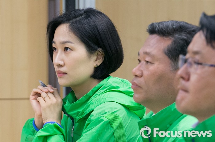 (서울=포커스뉴스) 3일 오전 서울 여의도 국회 의원회관에서 열린 국민의당 정책역량 강화 집중워크샵에 참석한 김수민(왼쪽) 당선인이 박지원 원내대표의 특강을 듣고 있다. 김 당선인은 20대 총선에서 최연소 당선인이자 헌정사상 최연소 비례대표 국회의원이다.