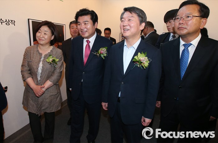 (서울=포커스뉴스) 3일 오전 서울 강남구 코엑스에서 열린 '52회 한국보도사진전 개막식'에 참석한 김부겸(오른쪽부터) 더불어민주당 당선인, 안철수 국민의당 상임공동대표, 원유철 새누리당 원내대표, 심상정 정의당 상임대표가 이동희 사진기자협회장의 안내를 받으며 전시된 사진을 관람하고 있다. '찰나의 기록, 시대의 진실'을 주제로 진행된 이번 전시는 시대의 진실을 기록한다는 사명감으로 역사의 현장을 묵묵히 지키며 취재한 수백만 컷 중 선정된 150여점과 '현장의 사진기자', '역대 대상 수상작' 등 250여점의 사진이 전시된다.