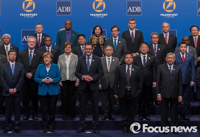 (서울=포커스뉴스) 유일호 부총리 겸 기획재정부 장관이 2일(현지시간) 독일 메세 프랑크푸르트에서 열린 제49차 ADB(아시아개발은행)연차총회에 참석해, 메르켈 독일 총리를 비롯 각국 대표들과 기념촬영을 하고 있다. <사진제공=기획재정부>