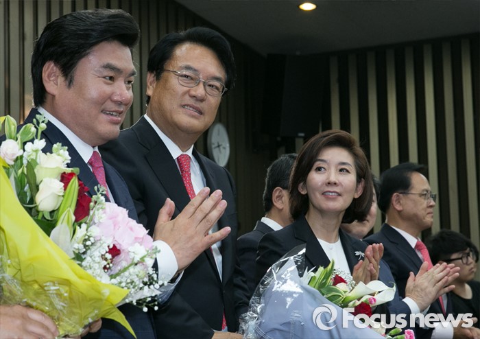 | △ 박수 받는 신임 원내대표 |