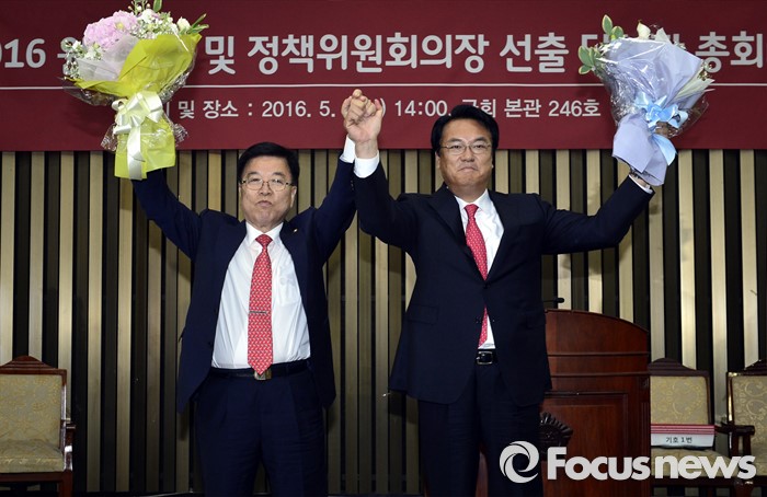 (서울=포커스뉴스) 새누리당의 20대 국회를 이끌어 갈 신임 원내대표로 3일 정진석 당선인이 선출됐다. 정책위의장은 러닝메이트를 이룬 김광림 의원이 맡게 됐다.