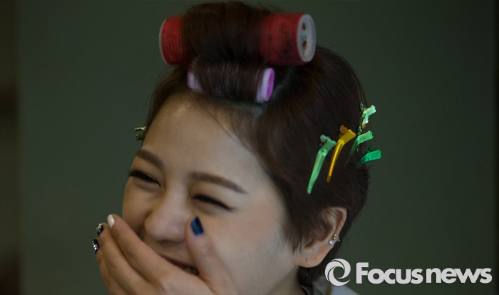 (서울=포커스뉴스) 3일 오후 서울 강남구 컬처앤네이처 청담점에서 걸그룹 솔티의 멤버 겨울이 머리손질을 하고 있다. 솔티는 3일 오후 SBS MTV 생방송 더쇼를 통해 데뷔한 걸그룹 이다.