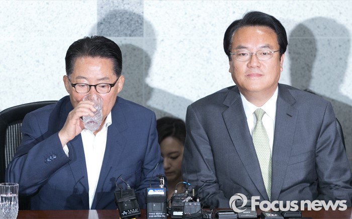 | △ 정진석 만난 박지원, '물부터 마시고' |