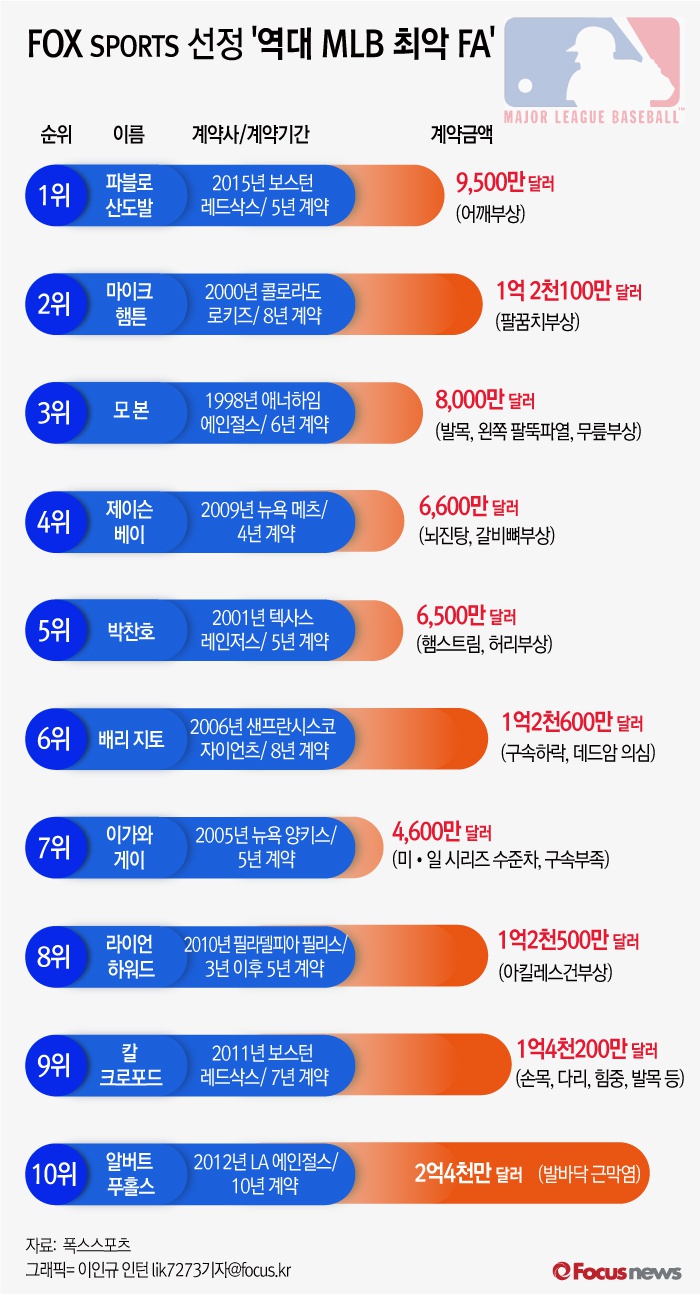| △ [그래픽] 폭스스포스 선정 '역대 MLB 최악 FA' |