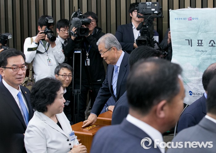 | △ 원내대표 후보 선출 위해 투표하는 김종인 |