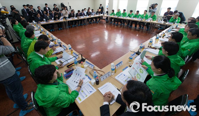 (인천=포커스뉴스) 안철수 국민의당 상임공동대표와 20대 총선 당선자들이 4일 오후 인천 남동구 (주)서울화장품 인천공장에서 열린 국민의당 정책역량 강화 집중 워크샵'중소기업 대표 및 근로자와의 간담회'에 참석해 한광석 서울화장품 회장의 인사말을 듣고 있다.