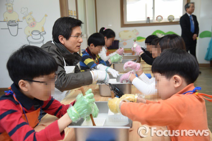 (세종=포커스뉴스) 황교안 국무총리가 어린이날을 하루 앞둔 4일 오후 세종시 연서면 세종 꿈의목장을 방문, 어린이들과 치즈 만들기 체험을 하고 있다. <사진제공=국무총리실>