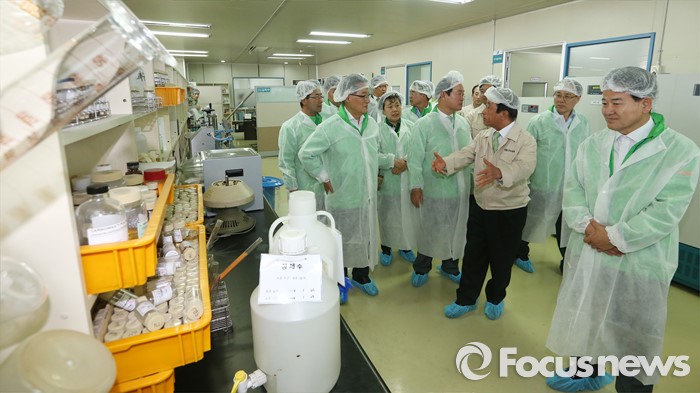 (인천=포커스뉴스) 박지원 국민의당 원내대표를 비롯한 20대 총선 당선인들이 4일 오후 인천 남동구 (주)서울화장품 인천공장에서 열린 국민의당 정책역량강화 집중 워크샵 '중소기업 대표 및 근로자와의 간담회'에서 연구실을 둘러보고 있다.
