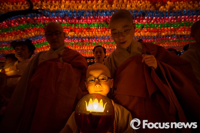 (서울=포커스뉴스) 4일 오후 서울 종로구 조계사에서 연등 점등식이 열리고 있다.