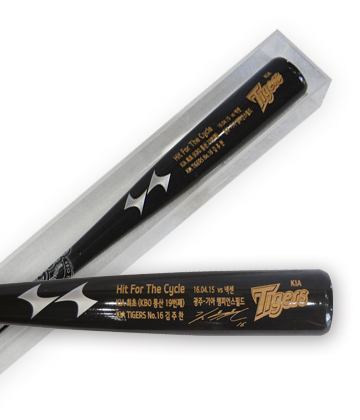 기념배트에는 김주찬의 사이클링 히트 달성 문구, 김주찬의 친필 사인이 새겨져 있다. 가격은 25만원. 50개 한정 판매다. 기념상품은 비젼코리아 온라인숍에서 예약할 수 있다.
