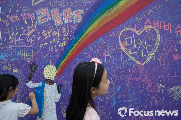 (서울=포커스뉴스) 어린이날을 맞아 5일 오후 서울 영동대로 일대에서 열린 '2016 C-페스티벌'에 참석한 어린이들이 대형 칠판에 낙서를 하며 즐거운 시간을 보내고 있다.