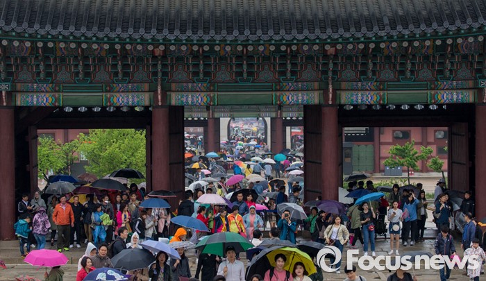 우산으로 가득한 경복궁