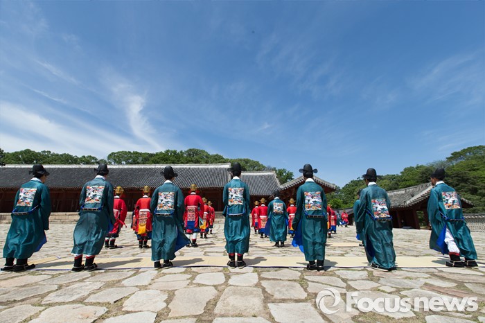 (서울=포커스뉴스) 7일 오후 서울 종묘 정전에서 열린 '조선의 세자빈 혼례를 고하다' 행사에서 참가자들이 묘현례를 재현하고 있다. 묘현례는 왕비나 세자빈이 왕실 혼례를 마친 후 조선왕조 역대 왕가 왕비의 신주가 모셔진 종묘를 알현하는 의례로서 조선시대 종묘에서 행해지는 국가의례 중 왕실 여성이 참여하는 유일한 행사이다.