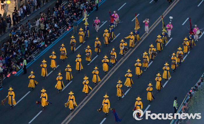 (서울=포커스뉴스) 부처님 오신날을 일주일 앞둔 7일 오후 서울 종로구 흥인지문부터 시작해 조계사까지 이어지는 화려한 연등 행렬이 펼쳐지고 있다.