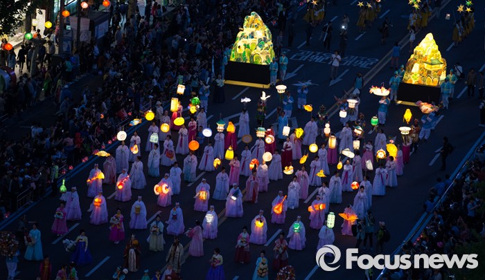 (서울=포커스뉴스) 부처님 오신날을 일주일 앞둔 7일 오후 서울 종로구 흥인지문부터 시작해 조계사까지 이어지는 화려한 연등 행렬이 펼쳐지고 있다.