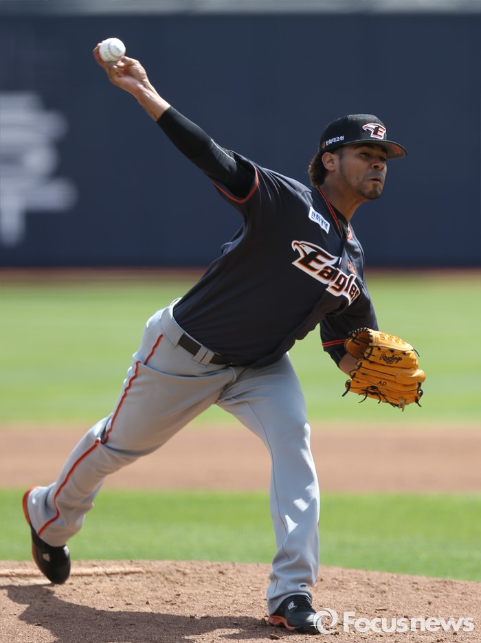 △ 올 시즌 첫 등판한 한화 선발투수 로저스의 투구