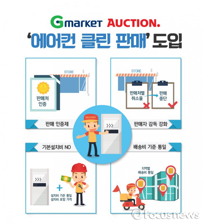 (서울=포커스뉴스) 이베이코리아가 운영하는 G마켓과 옥션은 에어컨 클린 판매 제도를 도입한다고 9일 밝혔다.