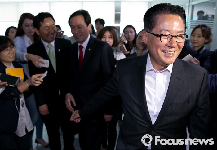 (서울=포커스뉴스) 우상호(왼쪽) 더불어민주당 원내대표가 9일 오전 서울 여의도 국회 의원회관에서 박지원 국민의당 원내대표를 예방, 면담을 마친 뒤 나와 취재진 앞에서 대화한 뒤 이동하고 있다.