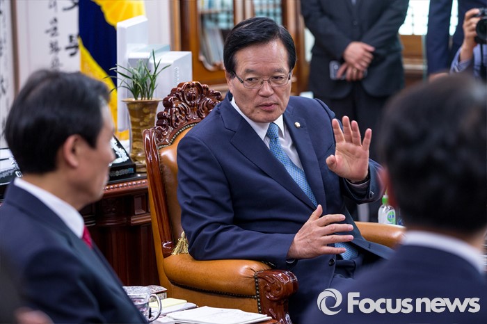 (서울=포커스뉴스) 정의화 국회의장과 우상호 더불어민주당 원내대표를 비롯한 신임원내대표단이 9일 오전 서울 여의도 국회에서 면담 하고 있다.