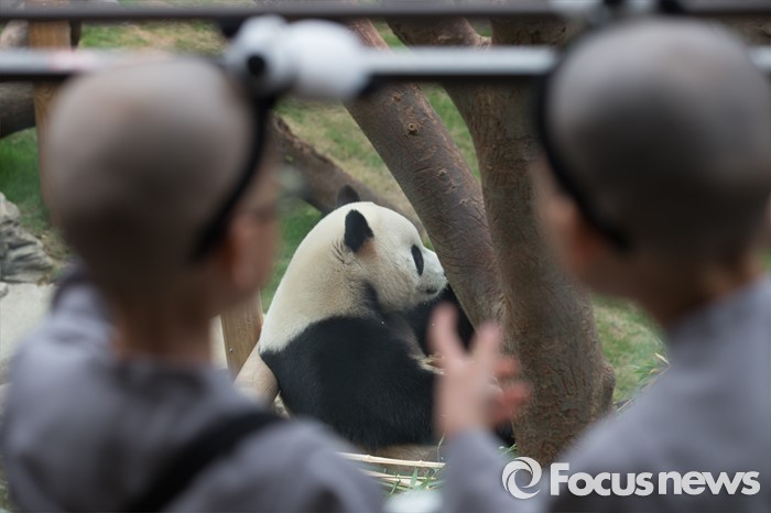 (용인=포커스뉴스) 9일 오전 경기도 용인시 에버랜드에서 동자승들이 판다들을 구경하며 즐거운 시간을 보내고 있다.