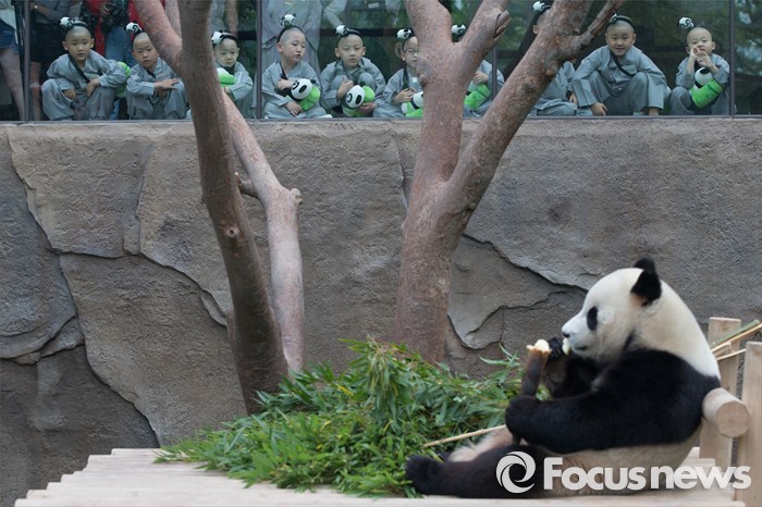 (용인=포커스뉴스) 9일 오전 경기도 용인시 에버랜드에서 동자승들이 판다들을 구경하며 즐거운 시간을 보내고 있다.