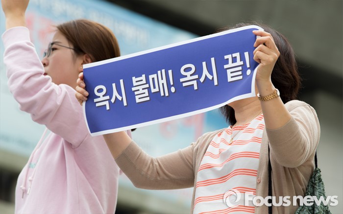 (서울=포커스뉴스) 9일 오후 서울 종로구 세종문화회관 앞 계단에서 환경운동연합 및 시민사회단체들이 옥시 불매 집중 행동 돌입선언 기자회견을 하고 있다.