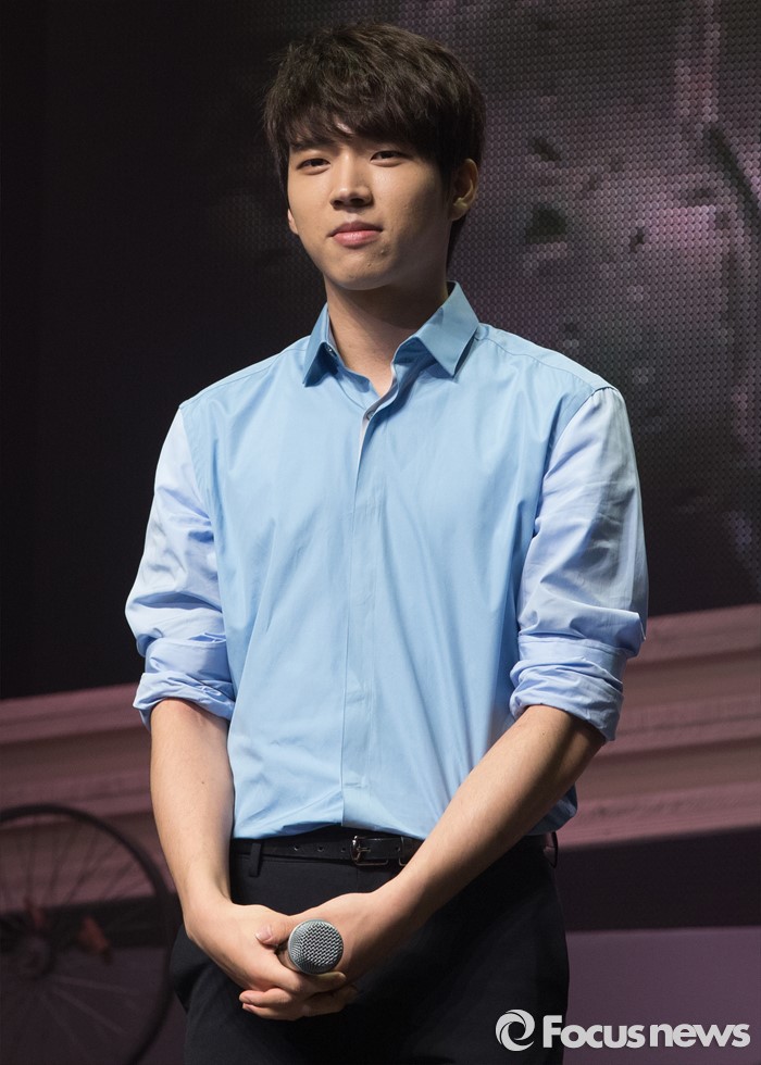 (서울=포커스뉴스) 9일 오후 서울 광진구 예스24라이브홀에서 열린 첫 솔로 미니앨범 발매 기념 프레스 쇼케이스에서 인피니트의 가수 남우현이 사회자의 질문을 듣고 있다.