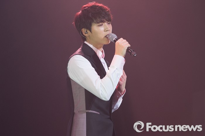 (서울=포커스뉴스) 9일 오후 서울 광진구 예스24라이브홀에서 열린 첫 솔로 미니앨범 발매 기념 프레스 쇼케이스에서 인피니트의 가수 남우현이 멋진 무대를 선보이고 있다.