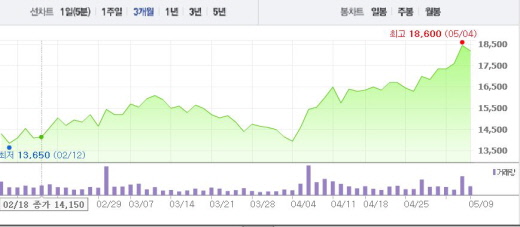 정유석 교보증권 연구원은 “2주간 카지노주의 주가 상승률이 12.8%를 기록했다”며 “4월 외국인전용 카지노 업체인 파라다이스의 매출액이 3월에 이어 또 성장하는 모습을 보였기 때문에 GKL과 파라다이스의 주가 상승이 지속될 것”이라고 예상했다.