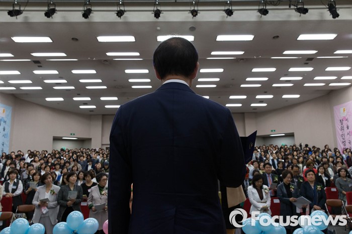 (서울=포커스뉴스) 9일 오후 서울 송파구 아이코리아에서 열린 '보육교직원 결의대회'에 참석한 보육관계자들이 보육인 윤리선언을 하고 있다.