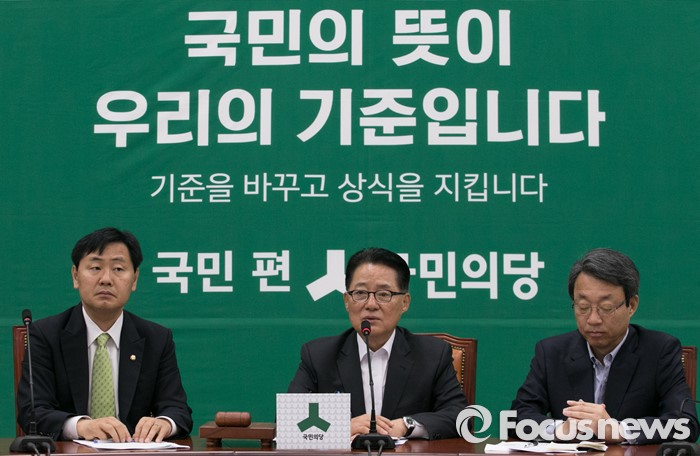 (서울=포커스뉴스) 박지원(가운데) 국민의당 원내대표가 10일 오전 서울 여의도 국회에서 열린 원내대책회의에 참석해 모두발언을 하고 있다.