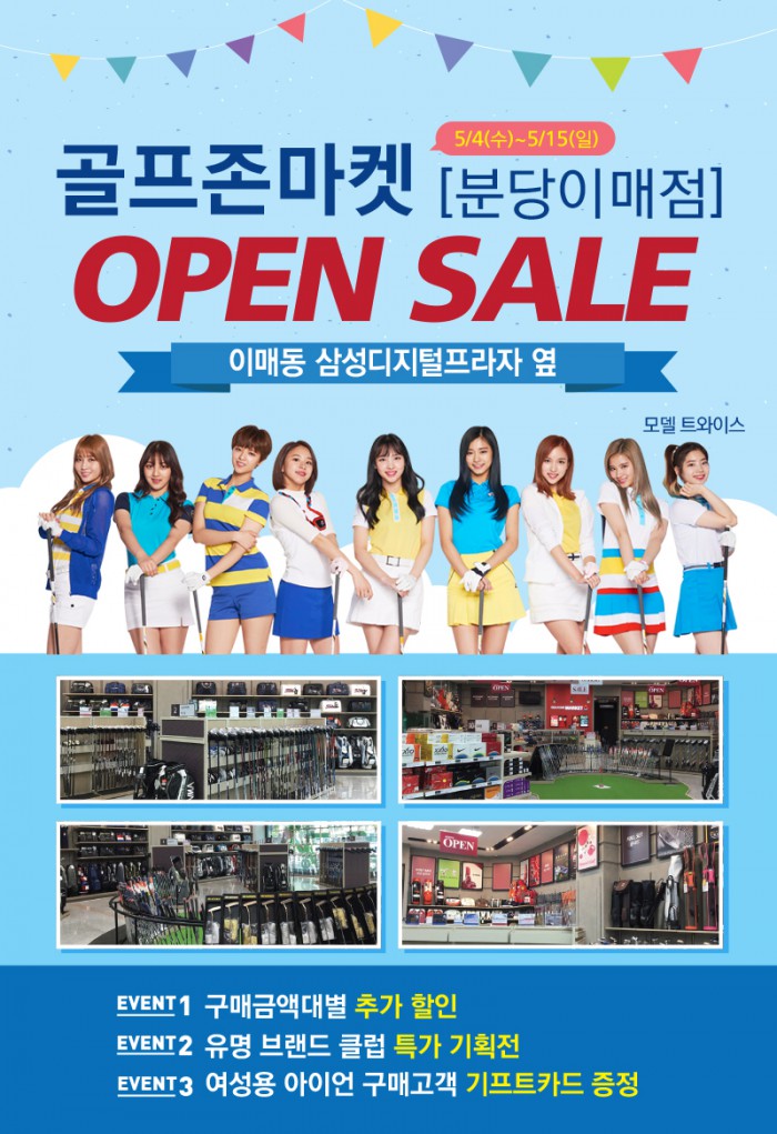 한편, 골프존마켓은 분당이매점 개장을 기념해 오는 15일까지 할인 이벤트를 진행한다.골프존마켓 분당이매점 개장 기념 할인 이벤트를 알리는 포스터.<사진제공=골프존마켓>