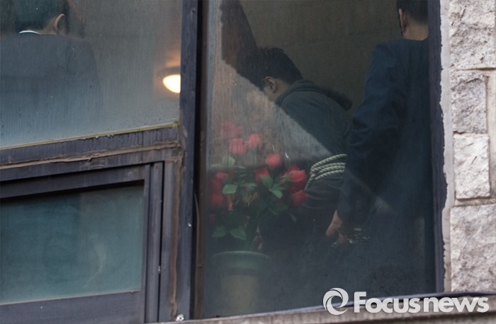 (인천=포커스뉴스) 안산 대부도 토막살인의 용의자 조성호가 10일 오전 인천 연수구 연수동의 주거지에서 범행 현장검증을 하고 있다.