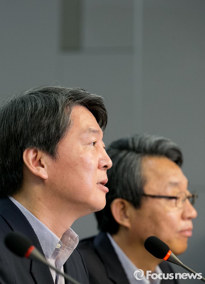 (서울=포커스뉴스) 안철수(왼쪽) 국민의당 상임공동대표가 10일 오전 서울 여의도 국회 의원회관에서 열린 당선자 총회 및 3차 집중워크숍에 참석해 모두발언을 하고 있다.