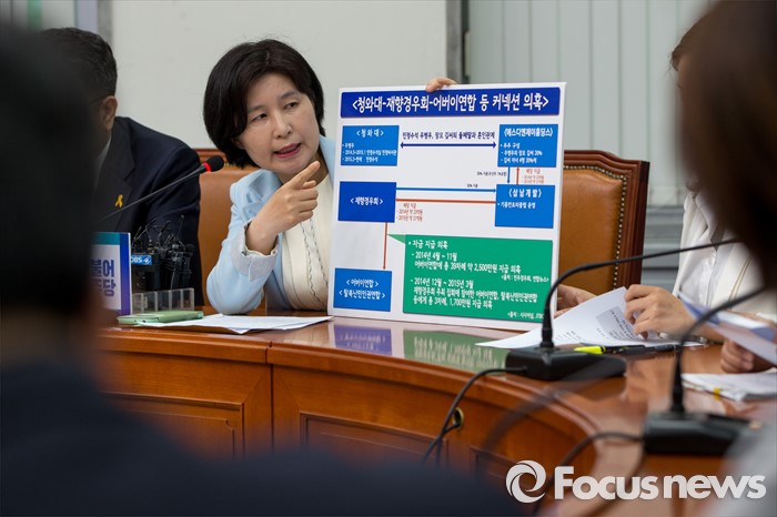 (서울=포커스뉴스) 백혜련 더불어민주당 당선자가 10일 오전 서울 여의도 국회에서 열린 어버이연합 등 보수단체 불법자금지원 의혹규명 진상조사 TF 3차 회의에 참석해 청와대와 보수단체 커넥션 의혹을 설명 하고 있다.